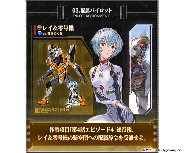 第4話エピソード4をクリアすることで、キャラクター「レイ&零号機」が仲間になるぞ!