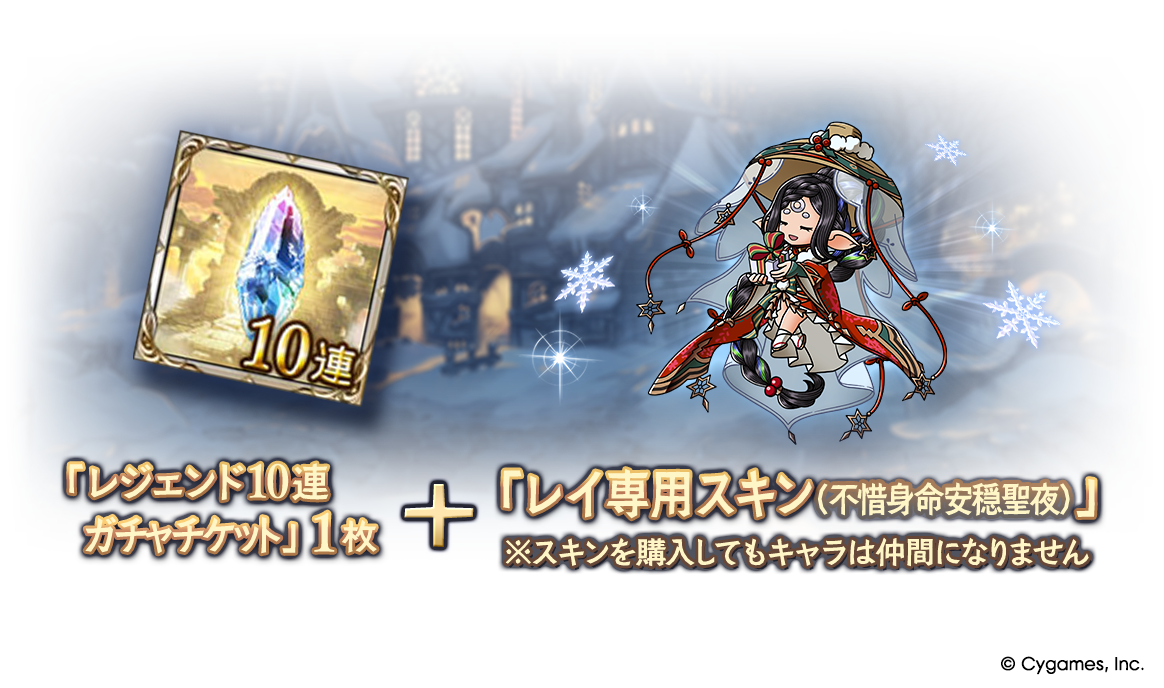 レジェンド10連ガチャチケットとレイ専用スキン「不惜身命安穏聖夜」のセットです。