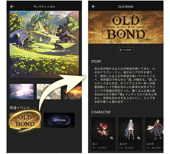 それぞれのイベントをタップすることで、「EVENT STORY」ページ内の各イベントのページへアクセスすることができます。