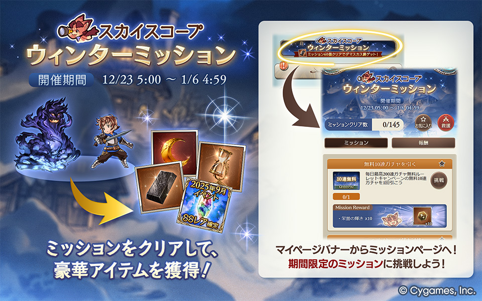 2025年12月23日(火) 5:00より、スカイスコープの通常ミッション内に「ウィンターミッション」を追加いたします!