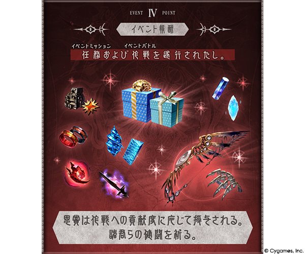 - イベント開催期間中にいつでも達成できるイベントミッションと、毎日更新されるミッションをクリアして、「イベント限定SSレア装備」やレジェンドガチャチケット、宝晶石などの報酬をGETしよう!