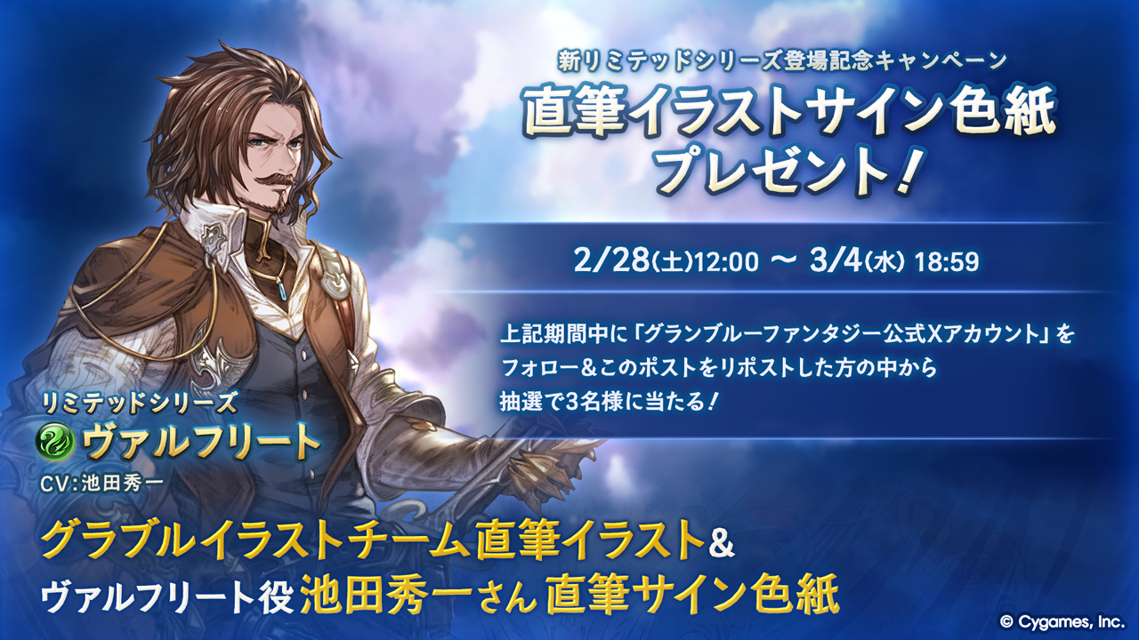 新リミテッドシリーズキャラクター「ヴァルフリート」の登場を記念して、直筆イラスト&直筆サイン色紙が抽選で当たるプレゼントキャンペーンを実施いたします!