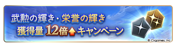 ※本キャンペーンと「12th Anniversary前夜祭キャンペーン」の「武勲の輝き・栄誉の輝き獲得量増加キャンペーン」の効果は重複しません