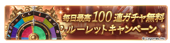 【1】毎日最高100連ガチャ無料ルーレットキャンペーン
